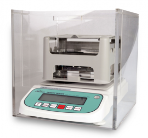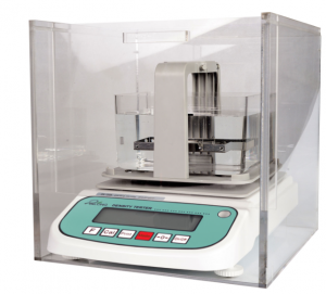 ②將樣品完全浸入水中,測水中重量,按M鍵記憶,直接顯示密度值。