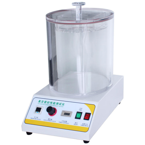 通過對真空室抽真空,使浸在水中的試樣產生內外壓差,觀測試樣內氣體外逸情況,以此判定試樣的密封性能;通過對真空室抽真空,使試樣產生內外壓差,觀測試樣膨脹及釋放真空后試樣形狀恢復情況,以此判定試樣的密封性能。